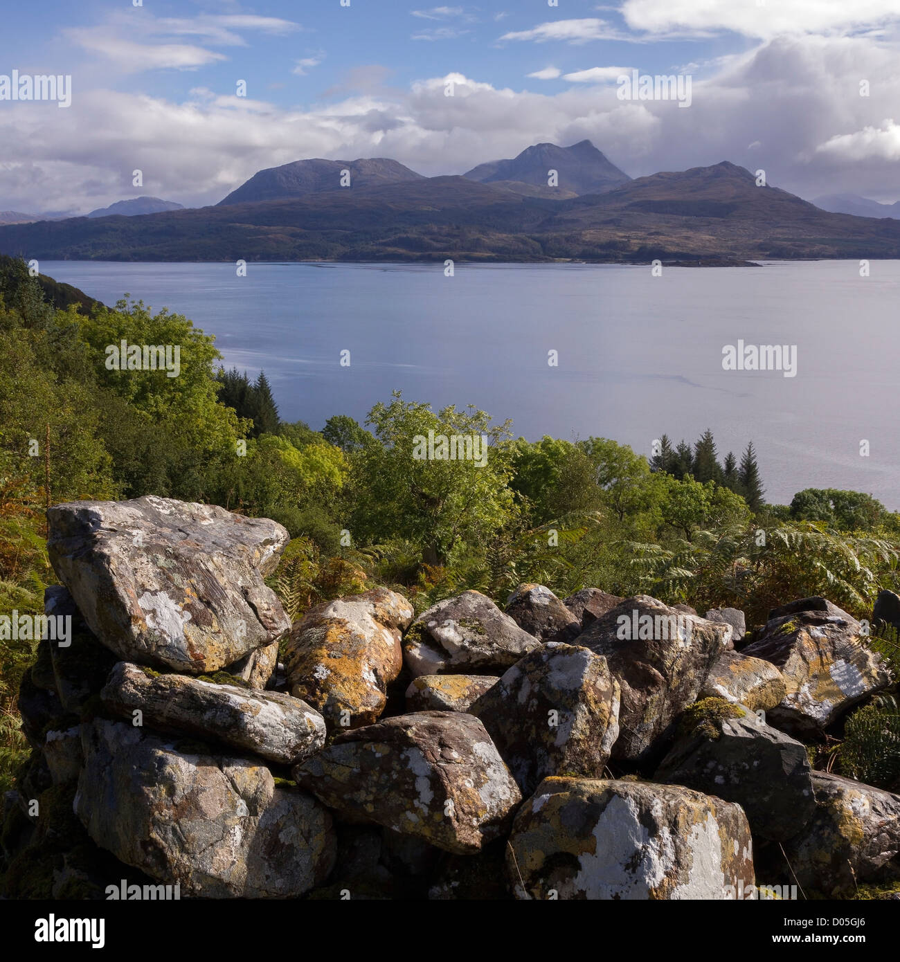 Old Croft Wall Sound Of Sleat And Mountains Of The Scottish Highlands Seen From The Ruined Village Of Leitir Fura Kinloch Isle Of Skye Stock Photo Alamy